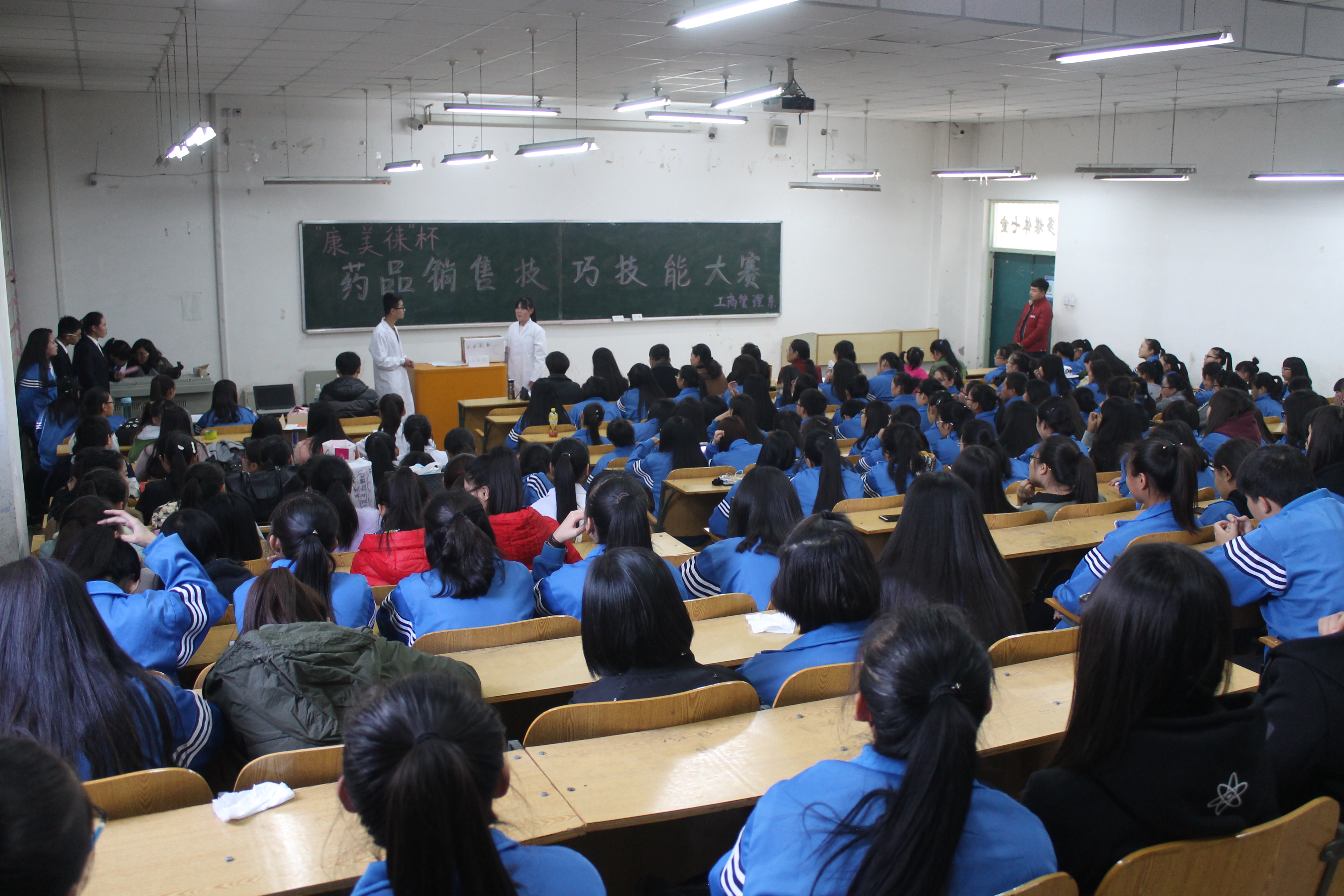 近日,我系成功举办《药品销售技巧》学生技能大赛。本次技能大赛为期半个月,由连锁经营管理教研室和医药营销教研室联合举办, 2015级和2016级药品经营与管理、医药营销、连锁经营管理、药品服务与管理4个专业共10个班级参与本次比赛。