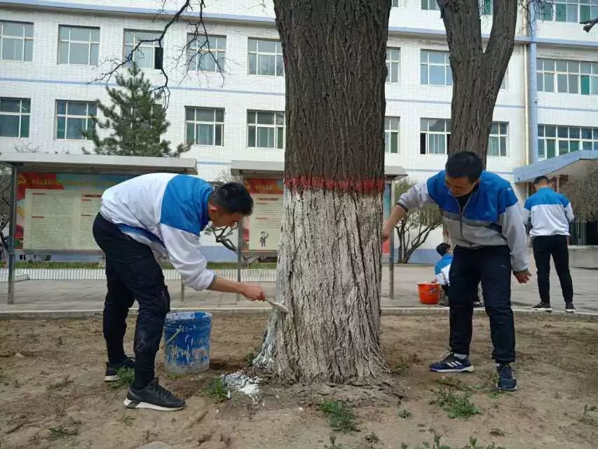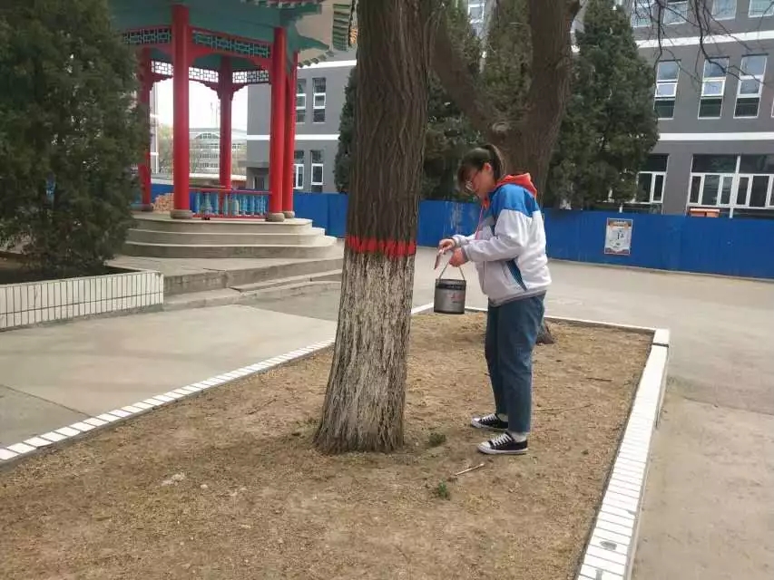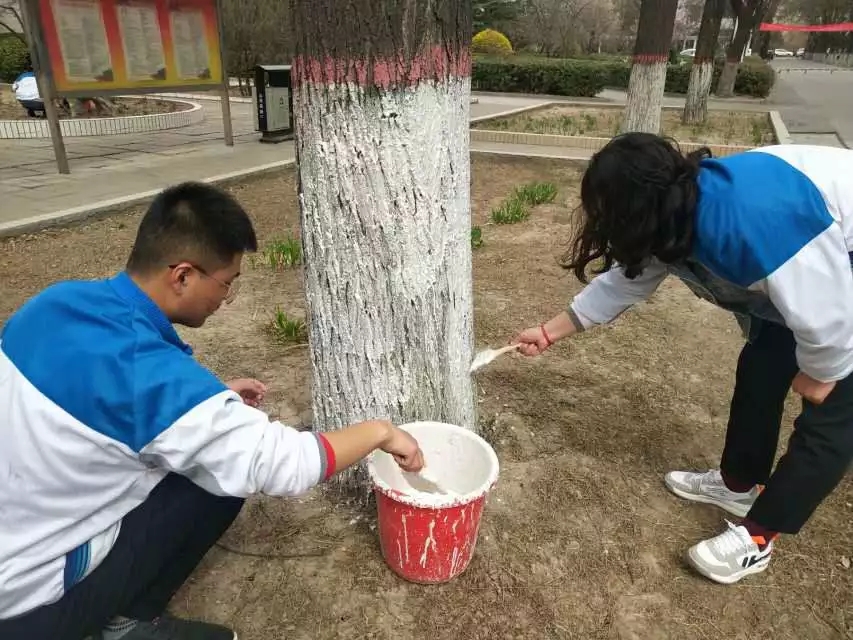 活动开始前,后勤处工作人员向大家介绍了树木刷白的防虫主要功效,并示范了刷白工序,讲解了注意事项。随后,同学们调配好石灰水,带着桶、刷子等工具来到指定区域,有条不紊地展开了刷树活动。许多志愿者虽然是第一次刷树,但都非常认真,高标准、严要求,即使涂料溅到身上,也没有影响刷树的热情,大家都认认真真,一丝不苟。刷树过程中掌握了不少窍门,做到树干粉刷高度一致、刷涂均匀,即起到了防虫作用,又达到了美化环境的效果。短短两个多小时,同学们圆满完成30多颗树木的粉刷工作。活动结束后,同学们还将剩余的石灰水还回,厉行节约,避免了浪费、乱倒、乱洒石灰水现象。