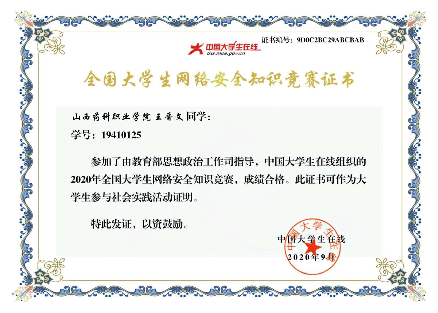 随后,同学们参加了教育部思政司指导中国大学生在线组织开展“2020年全国大学生网络安全知识竞赛”(9月10日至10月31日),通过网络答题方式普及网络安全知识。