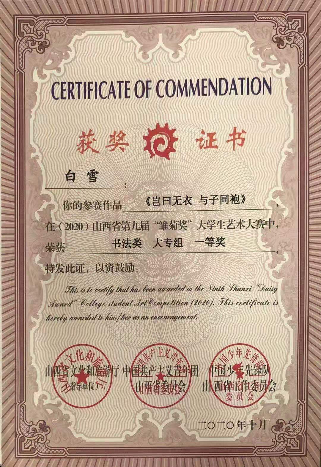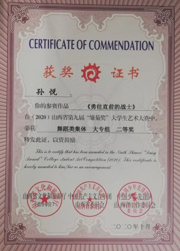 近日,由山西省教育厅、山西省文化厅和山西省演艺集团共同主办的山西省第九届“雏菊奖”大学生艺术大赛成绩公布。