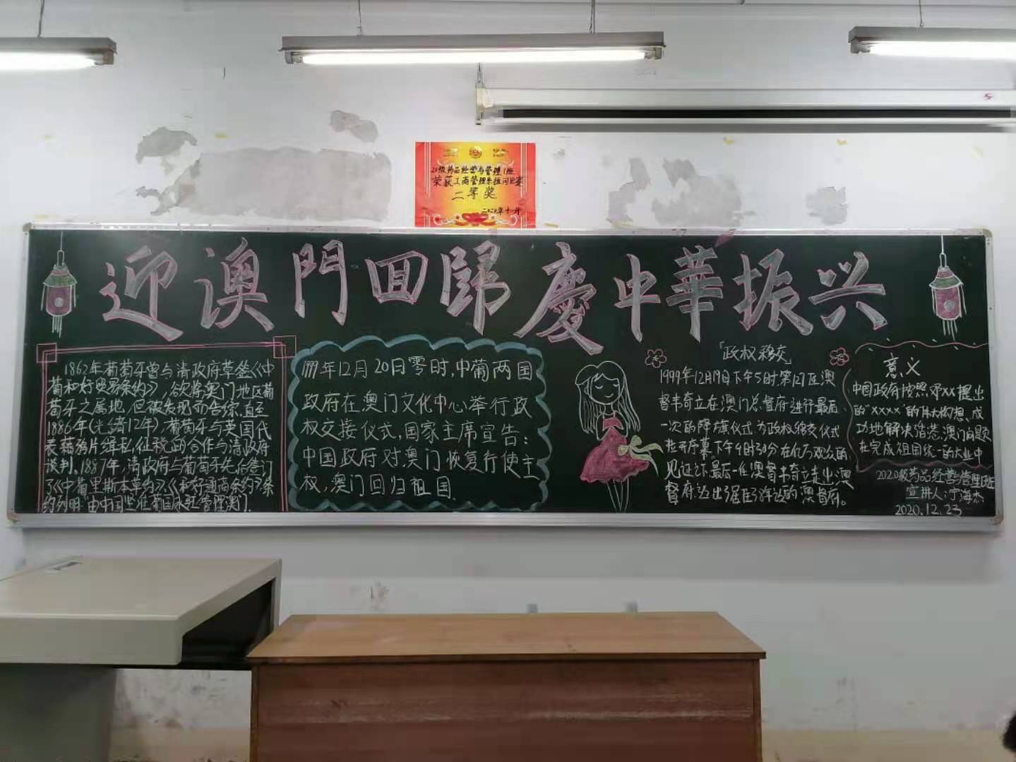 为庆祝澳门回归21周年,进一步加强当代大学生的思想道德建设,引导和激励广大青年学生大力弘扬爱国主义精神。12月23日,工商管理系组织各团支部开展了“迎澳门回归,庆中华振兴“主题团课。