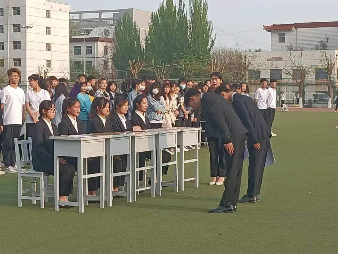 为培养学生的礼仪素养和综合素质,加强学生行为规范教育,提升学生就业竞争实力,营造校园崇德明礼风尚。2021年4月22日下午,工商管理系在学院操场举办了“献礼建党百周年,职业礼仪展风采”礼仪大赛。出席本次礼仪操比赛的有系党总支副书记韩晋平以及全体辅导员老师。