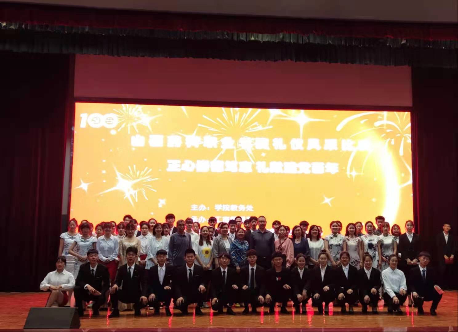 为庆祝中国共产党成立100周年,传承弘扬中华优秀传统文化和行业、职业文化,践行社会主义核心价值观和当代文明新风尚,引领药院学子在接力奋斗中担大任、做新人,5月26日下午,由学院教务处主办、工商管理系承办的“正心崇德笃志 礼献建党百年”礼仪风采大赛在学院大礼堂隆重举行,来自6个教学系的11支代表队参加了此次比赛。国药控股临汾宁乐药业有限公司总经理张会民,各部门负责人与800余名师生共同观看本次比赛。