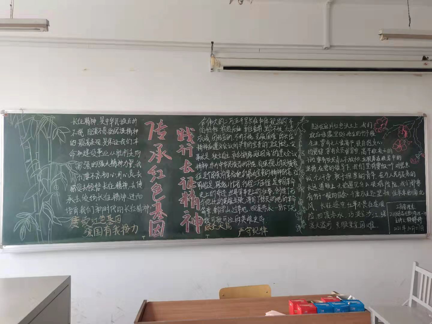 活动共分两个环节。首先,各班团支部书记带领同学们回顾那段艰苦卓绝的峥嵘岁月。同学们一起朗诵毛泽东的《七律·长征》,分享了发生在长征路上的著名战役和感人故事,充分领略了英雄的红军在毛泽东等同志的领导和指挥下,以非凡的智慧和勇气,运用机动灵活的战略战术,击退上百万穷凶极恶的追兵阻敌,征服冰山雪岭、沼泽草地,纵横十余省,长驱二万五千里的英勇事迹。第二个环节,同学们就传承长征精神进行了交流发言。大家结合当代青年现状和校园生活实际,用一张张富有冲击力的图片和鲜活的时政热点,指出了部分学生存在浪费粮食、浪费水电、虚荣攀比等不好的现象,这与长征精神是背道而驰的。