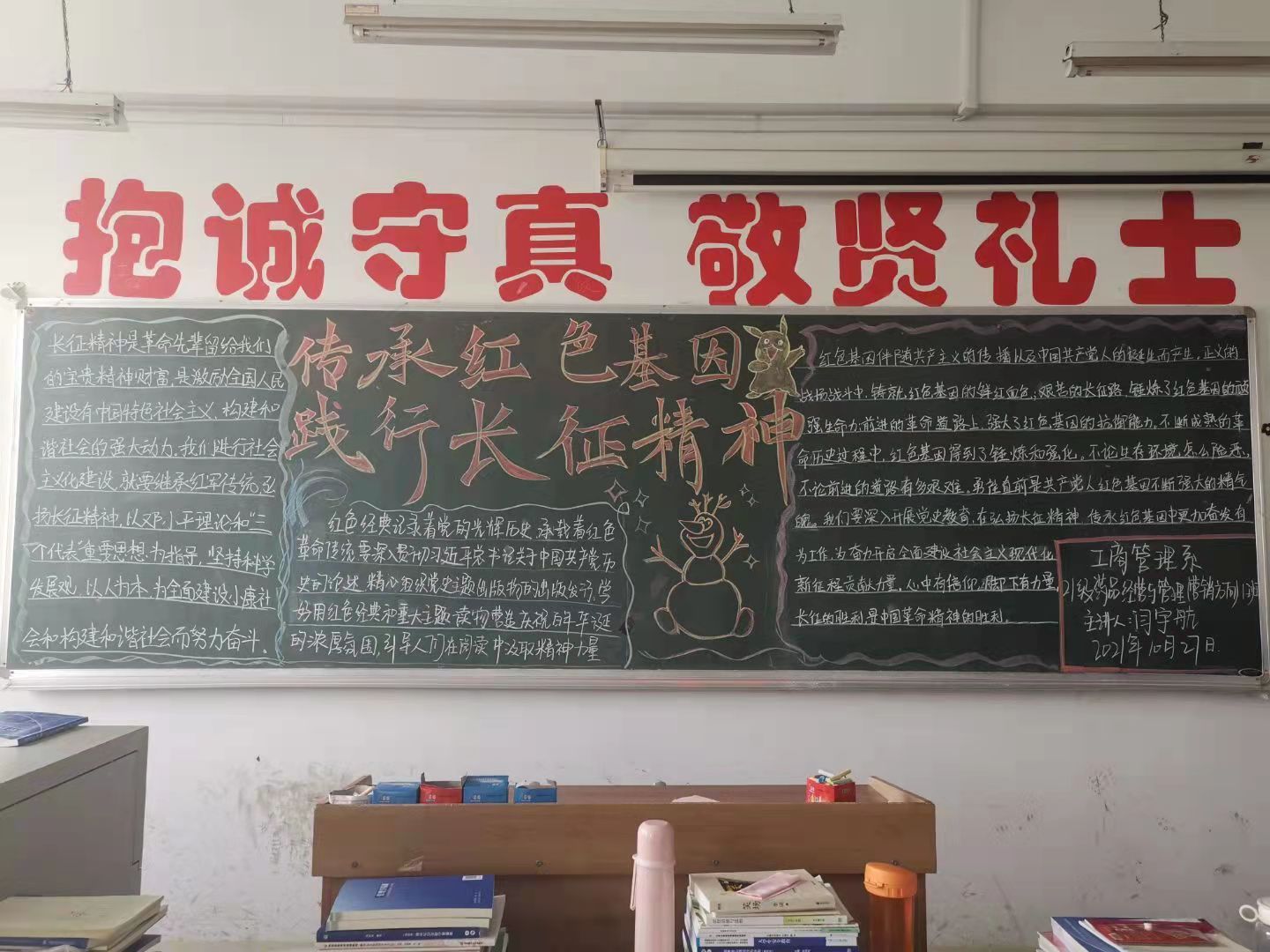 10月22日是长征胜利85周年。为铭记长征历史,赓续红色基因,工商管理系于10月27日组织各团支部开展了“传承红色基因,践行长征精神”主题团课。