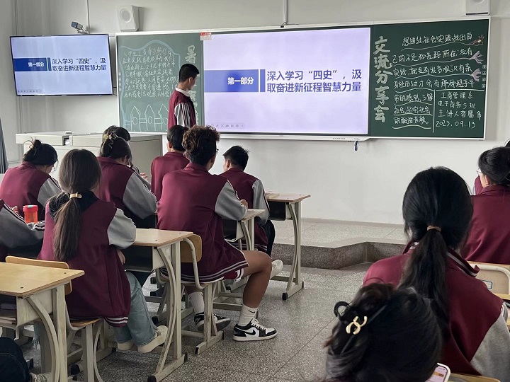 团课上,各班团支部围绕院团委下发的社会实践主题,从个人实践项目和团体实践项目两方面,结合本人实践情况,采用ppt、视频的形式,分享了今年暑期开展的丰富多彩的社会实践活动。团体实践项目代表中,实践队员围绕理论宣讲、志愿服务、专业实践、红色主题研学、社情调研、助力乡村振兴等活动,讲述了自己跟随学院组织的社会实践队的难忘经历。个人实践项目中,有的同学依托《“第三课堂”学生实践手册》,围绕德智体美劳五个板块,给大家分享了自己暑期丰富的实践活动。有的同学,相应当地团委“返家乡”社会实践项目,积极分享了自己走入乡村基层,助力乡村振兴的社会实践活动。