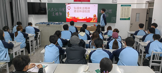 2023年12月4日是我国第十个国家宪法日,为深入学习贯彻党的二十大精神,贯彻落实习近平总书记关于宪法教育的重要指示精神,强化平安校园建设的长效机制,使全体团员青年树立起法律意识,增强法治观念。工商管理系分团委于12月6日组织全系在校团支部开展了“弘扬宪法精神,建设和谐校园”主题团课。