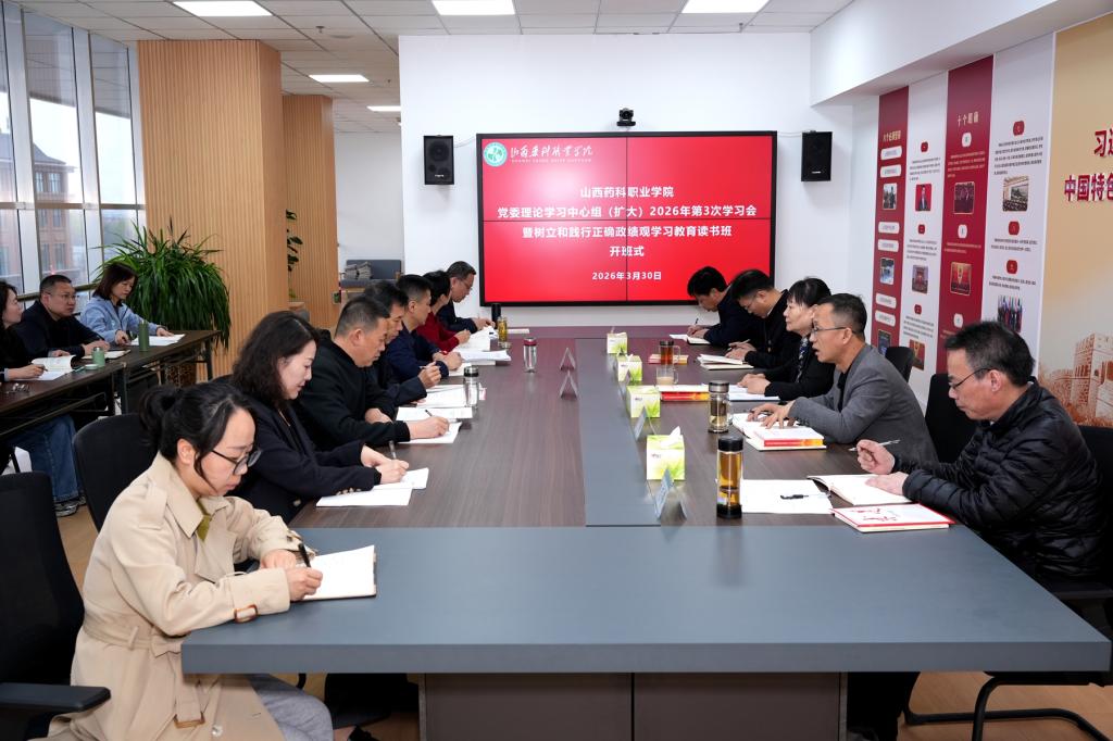 3月30至31日,学院在综合楼414室举行党委理论学习中心组(扩大)2026年第3次学习会暨树立和践行正确政绩观学习教育读书班。院党委书记张轩萍作开班和总结讲话,党委理论学习中心组成员、学习教育专班成员参加。大思政党总支书记、马克思主义学院院长任俊峰作专题辅导。