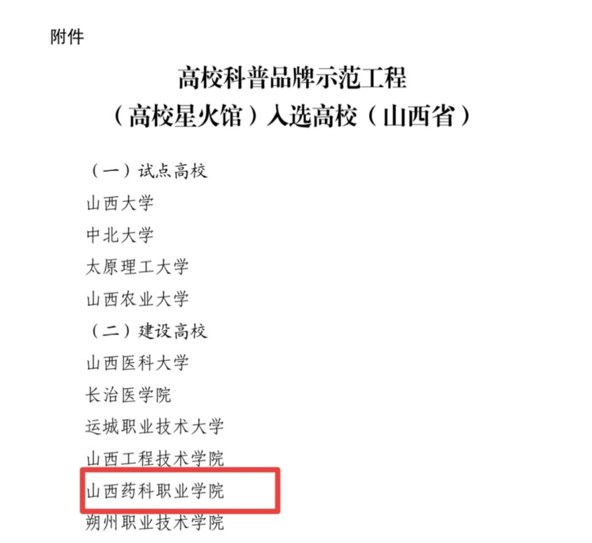 • 山西药科职业学院荣膺中国科协2025年度“高校科普品牌示范工程…