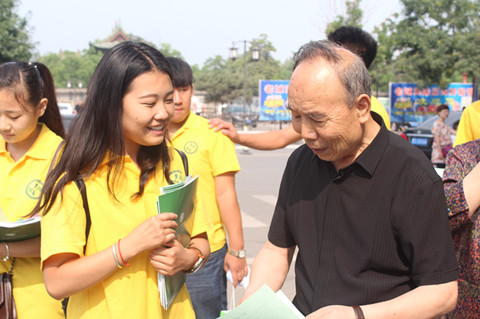 实践队员冒着高温酷暑行走在大街小巷为群众宣传讲解新颁布的《食品安全法》。在宣传过程中,许多群众问到在日常饮食方面,食物怎样搭配更营养更健康,高血压、糖尿病患者在饮食方面要注意什么,夏天吃什么比较好等问题,同学们耐心回答,同时还为群众讲解健康饮食和安全用药方面的知识。
