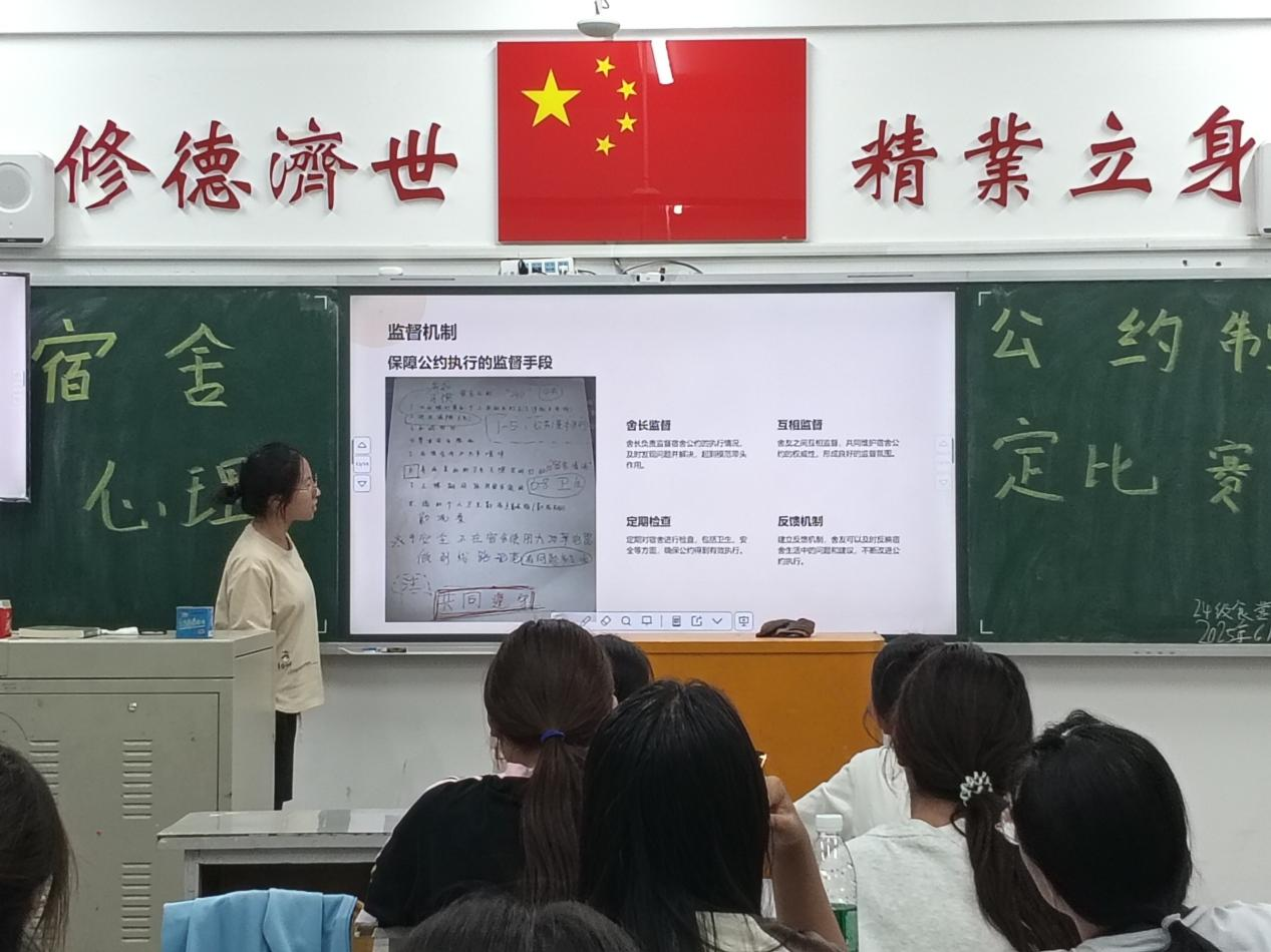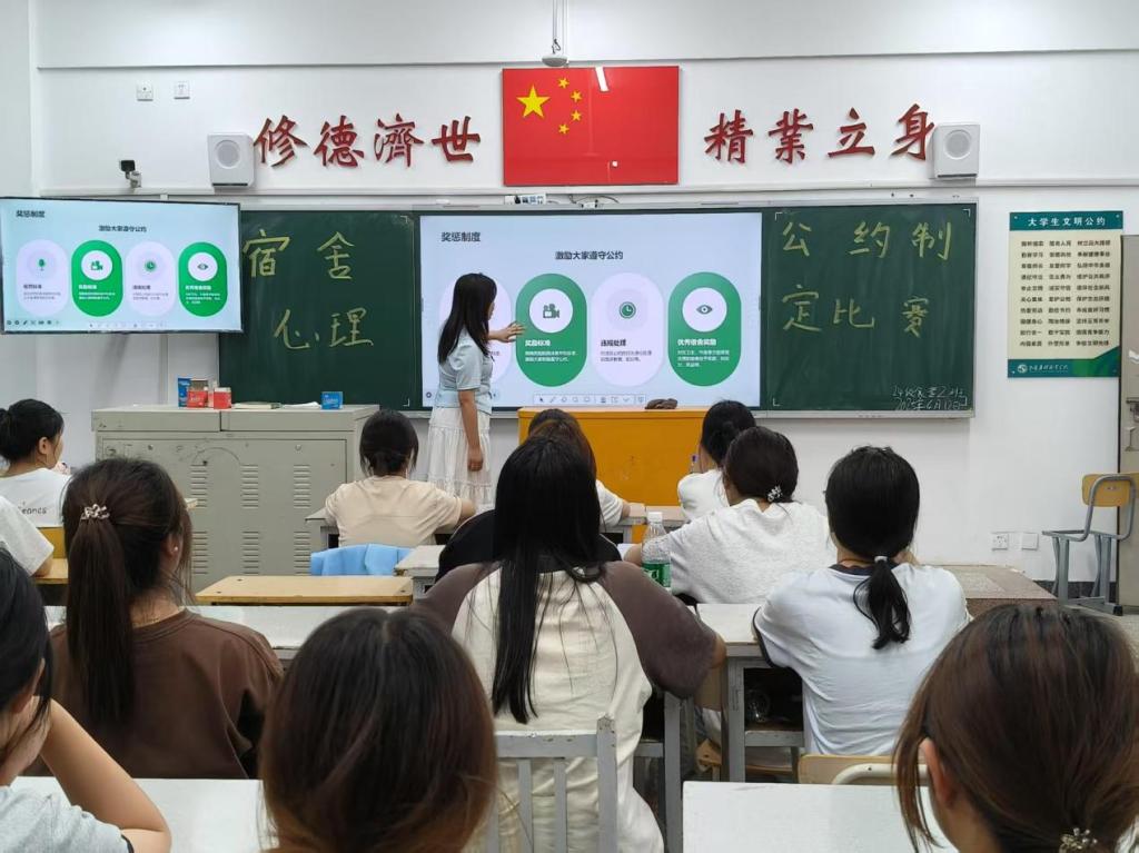 活动伊始,各宿舍成员积极响应,利用课余时间,围绕尊重与包容、沟通与互助、情绪管理等心理健康主题,共同探讨、精心策划,将对宿舍生活的美好愿景融入到公约之中。一些宿舍采用趣味漫画的形式来展示公约内容,生动而形象地描绘了舍友间的相处之道;而其他宿舍则结合自身特色,制定了个性化的“心灵守护计划”,约定在成员遇到困难时,及时提供支持与鼓励。此外,还有宿舍将公约编写成押韵的顺口溜,便于记忆与传颂,让心理健康的理念深入人心。通过这些创意十足的方式,不仅增强了宿舍成员之间的凝聚力,也让大家对心理健康有了更深的认识和重视。整个比赛过程中,充满了积极向上的氛围,同学们在参与中收获了成长与快乐。