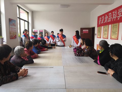 为大力宣传食品营养与安全常识,普及食品科学知识,充分发挥专业优势为民服务,5月8日下午,我系分团委副书记张玲、专业教师郭芸与10名青年志愿者一同前往郑村社区开展了以“普及食品科学知识,共营健康美好生活”为主题的为民服务和志愿服务活动。