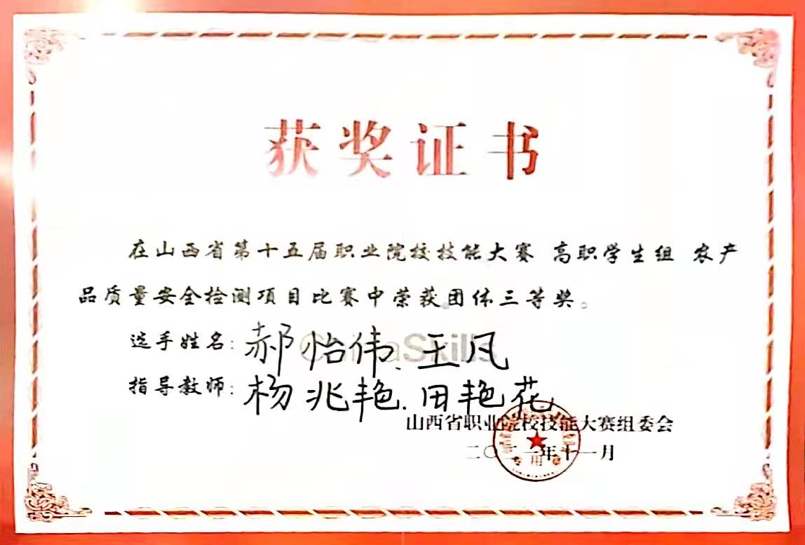 2021年11月27日至11月28日,山西省第十五届职业院校技能大赛高职组“农产品质量安全检测”技能比赛在晋中职业技术学院成功举办。我系主任徐丽霞带队参加了比赛。