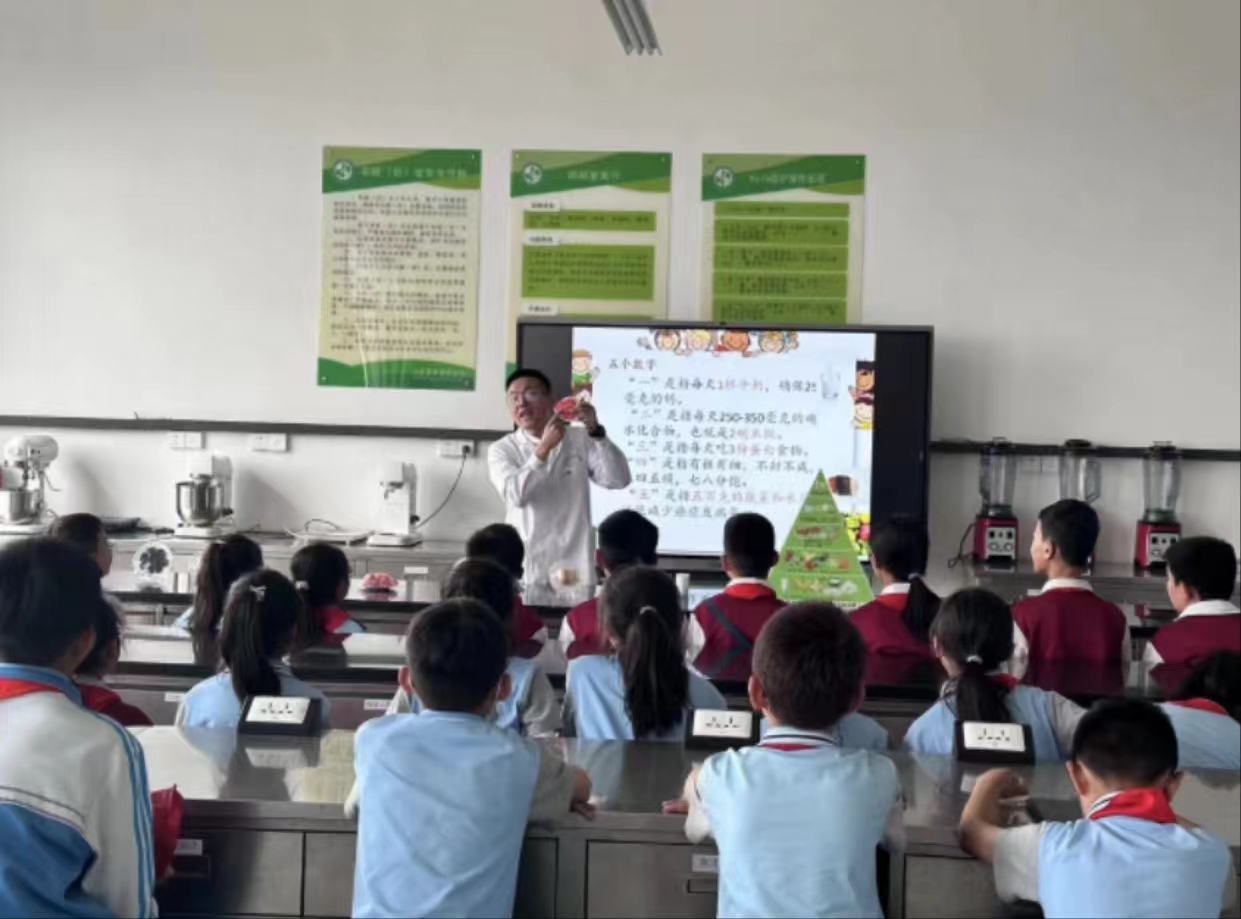 活动中,食品系教师董双涛以“食品安全与营养”为题,结合儿童营养特点为两所学校的师生做了营养与健康知识科普,在轻松愉快的氛围中为同学们讲授了营养膳食的小知识,并以“五个数字、五种颜色、五层宝塔”为主线,对每天的膳食搭配、食物多样性和膳食比例进行了深入浅出的科普,在场的学生兴奋地说:“以前不知道食物中有这么多奥秘!老师的讲解十分生动,也让我学到了很多食品安全与营养健康的知识”。