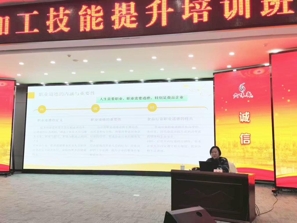 2025 年 3 月 18 日下午,山西药科职业学院食品系教师高扬前往太原六味斋实业有限公司,开展了一场以 “提高食品行业从业人员食品安全意识与职业道德” 为主题的专业培训活动。此次培训吸引了六味斋生产、质检、仓储等核心岗位的 200 余名员工积极参与,旨在切实提升企业员工的职业素养,强化食品安全理念。