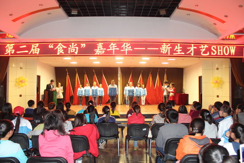 金风飒爽喜迎新生,丹桂飘香共祝美好。食品工程系“第二届‘食尚’嘉年华—新生才艺show”于2013年10月17日晚7点在文体活动中心隆重举行。系分团委书记高扬、各新生班班主任和200多名学生一起观看了演出。