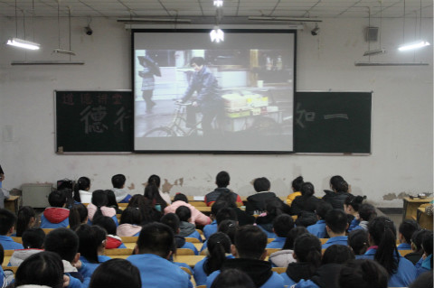 本次活动分唱一首歌曲、诵一段经典、看一部短片、讲一个故事、做一个承诺五个环节。全体合唱《感恩的心》让大家沉浸在浓浓的爱与感恩的氛围中,接着辅导员赵敏老师带领大家诵读了《弟子规》,教导同学们如何待人接物,如何恪守规范。随后观看了感动中国人物《全国最美家庭赵金凤慈善公益事迹》短片,一名退休职工家属用真诚、厚爱、博大的胸怀帮助许多学子完成学业、帮助贫困家庭脱贫致富,帮助贫困山区修桥补路,这种乐于助人、无私奉献的精神深深地打动了学生们。讲一个故事环节中,同学们用表演和演讲的形式,将生活中的一幕幕还原,引起了大家强烈的共鸣。最后,在辅导员赵敏老师的带领下,大家集体承诺从小事做起,从自己做起,成为道德的受益者、传播者和实践者,争做有理想有道德的好公民。