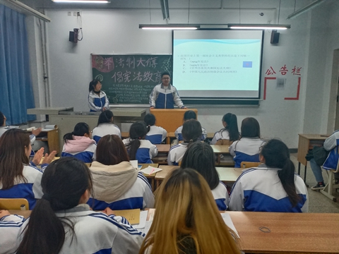 为深入学习宪法精神,牢固树立宪法法制思维,进一步提高大学生法治素养增强法制意识,推动校园法治文化建设。食品工程系以各班为单位于12月3日晚自习开展以“举法治大旗、倡宪法教育”为主题的班会。