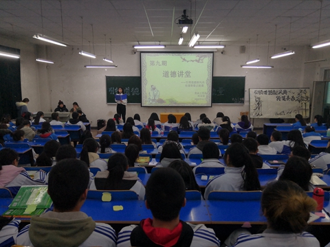 活动伊始,首先由我系辅导员韩莹老师致词,向同学们讲述了道德的含义、当代道德观念在社会主义核心价值观中的体现、以及礼仪对我们生活的影响。接下来,在看一部短片中,使同学们了解到点滴小事中的礼仪,讲故事环节,学生代表向大家分享了他们的礼仪故事,并且激励着大家在生活中要懂礼、讲礼、行礼,传递青春正能量;随后主持人带领全体同学合唱歌曲《弟子规》,朗朗上口的经典让我们深刻领略了中国传统文化的优秀品质,在场学生共同承诺做讲文明、知礼仪、守法纪的人,最后,在送祝福环节,大家纷纷写下了自己在道德修养方面的美好追求,并将自己的心愿贴在了励志展板上。