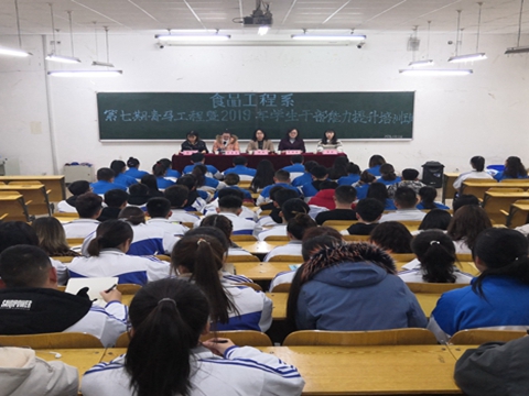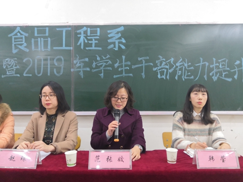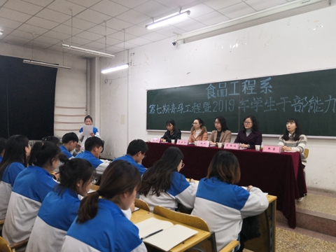 为了增强青年学生和团学骨干的思想政治素质,提高学生干部对自身角色的深刻认识,进一步加强学生干部队伍建设。食品工程系于12月11日在二层二阶举行第七期“青马工程”暨2019年学生干部能力提升培训班开班仪式。出席本次活动的有院团委副书记赵琛、食品工程系党总支副书记范张姣、分团委副书记张玲、辅导员李景圆、韩莹,培训班全体学员参加开班仪式。