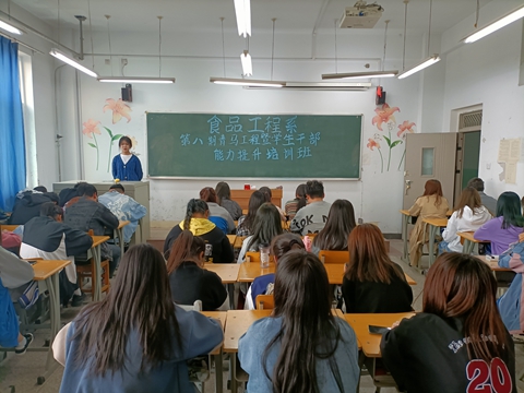 为普及青马学员和学生骨干力量在新闻宣传方面的技能,提高团学骨干的综合能力,助力我系学生工作的开展与进行,食品工程系分团委于4月8日下午开展了第八期青马工程暨学生干部能力提升培训之新闻写作与摄影技巧培训,我系第八期青马工程全体学员参加培训。