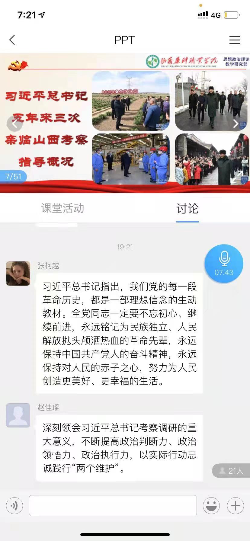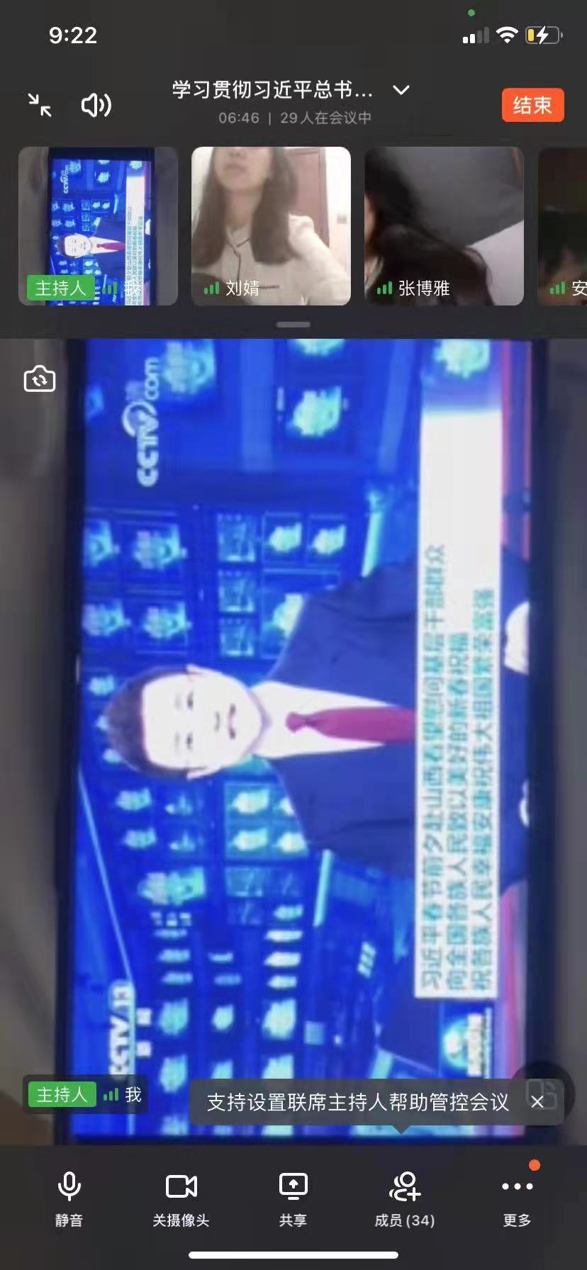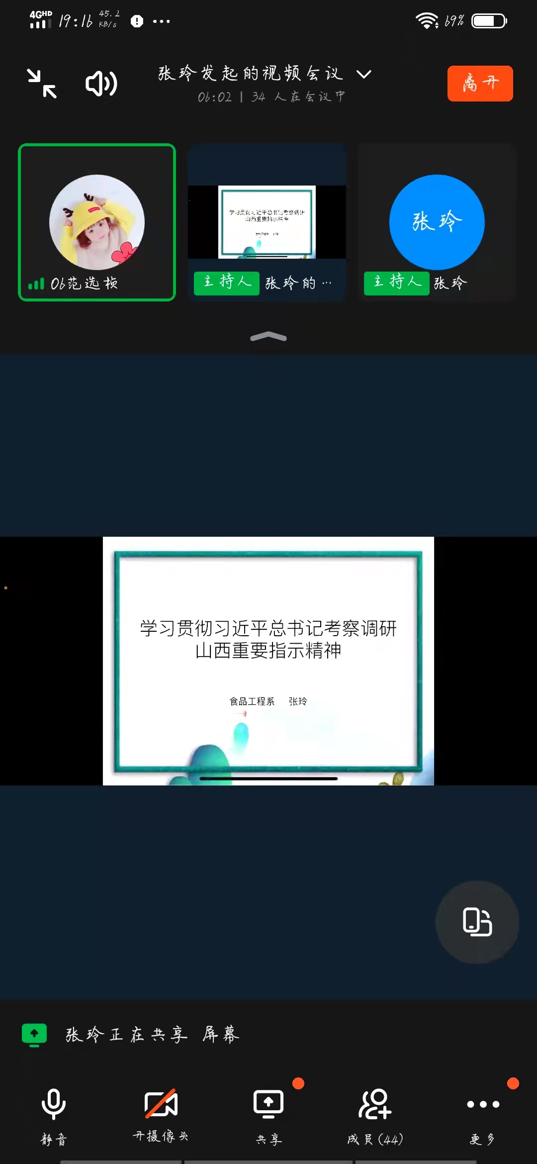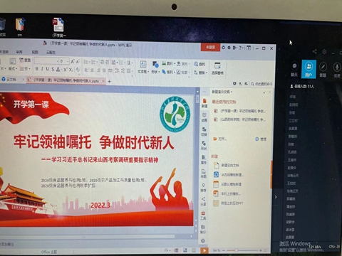 3月6日晚,食品工程系辅导员以“学习习近平总书记考察调研山西重要指示精神”为题组织召开主题班会开展了灵活多样、形式新颖的学习交流活动,带领同学们学习习近平总书记考察调研山西重要指示精神,跟进学习全国“两会”精神,并对学生们即将开始的线上学习提出了要求,对当下疫情防控工作进行了安排。
