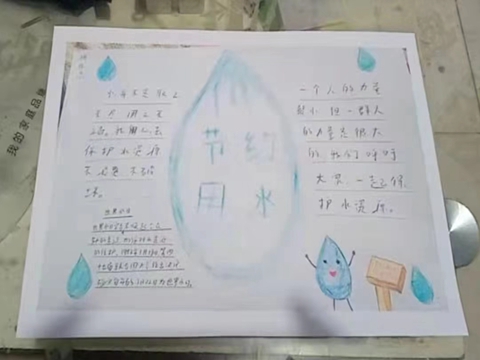 本次活动在创作中渗透节水意识,使同学们了解了更多的节水知识,激发了学生们爱节水、爱创作的热情,树立爱水、惜水、节水意识。
