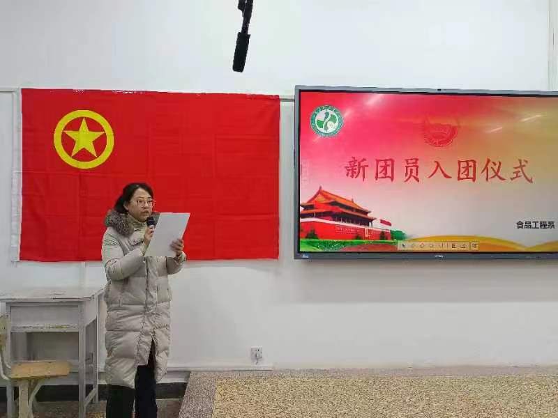 食品工程系辅导员史大鑫老师代表分团委对新团员提出了希望和要求,希望新团员以入团作为新的起点,勤奋学习,尊敬师长,团结同学,遵守纪律,培育良好的思想品德,在各个方面起好模范带头作用,做一名合格的共青团员。