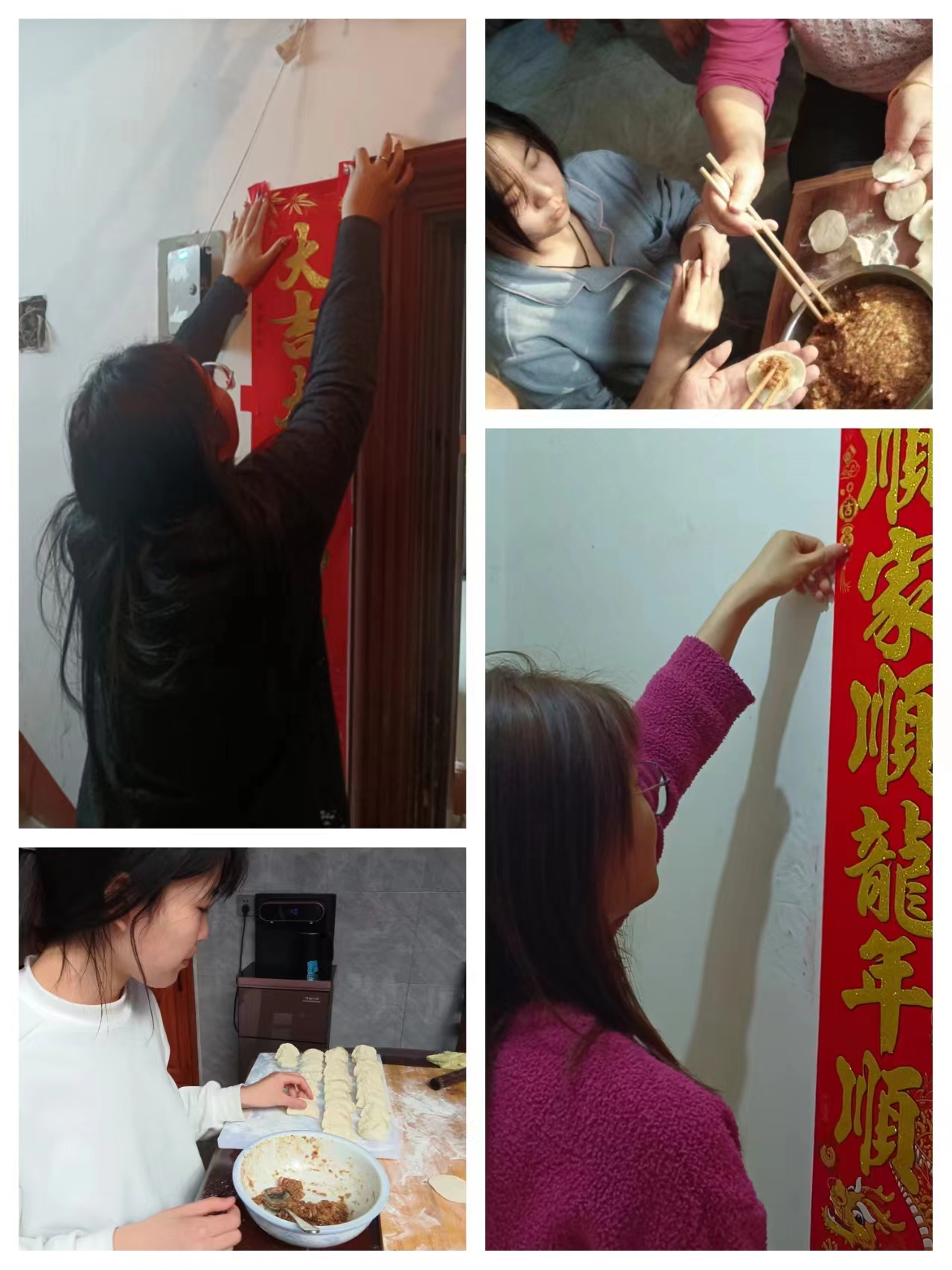 新春佳节即将来临,为丰富同学们的生活,弘扬中华优秀传统文化,营造欢乐祥和的节日氛围,组织我系学生开展“贴春联、包饺子、送温暖”主题活动。让同学们感受到过年的氛围,为父母分担家务,体会到劳动的辛苦,在劳动之后获得的成就感。