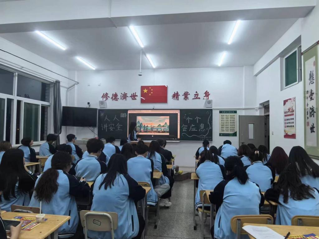 班会上,各班团支书借助PPT课件、视频、图片等,为学生详细讲解在地震、火灾、水灾等灾难中的求生技巧,让同学们了解防灾减灾相关知识,增强自救自护能力,树立起尊重生命、珍惜生命的意识。