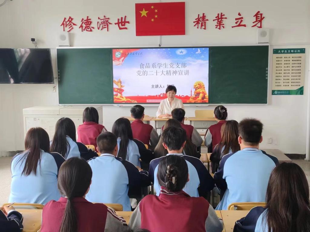 为加强入党积极分子对党组织的了解,更好地帮助他们入党,提升他们的政治理论水平和思想内涵修养,切实把思想和行动统一起来,同党的二十大精神相结合,6月12日上午,食品系教师党支部书记郭芸给入党积极分子在东教603教室开展“重温党的二十大精神”主题党课。