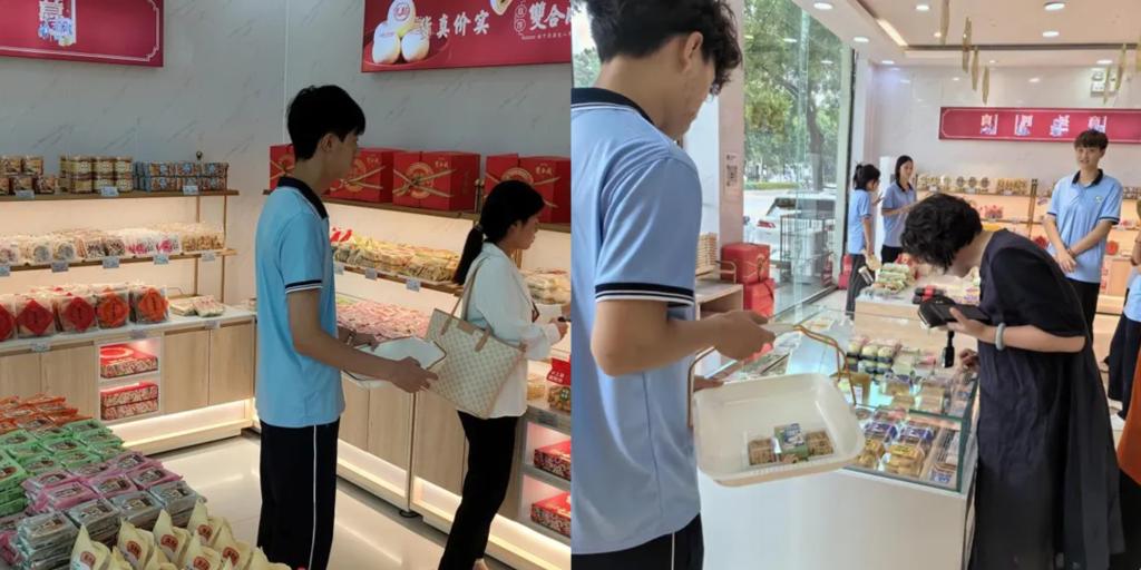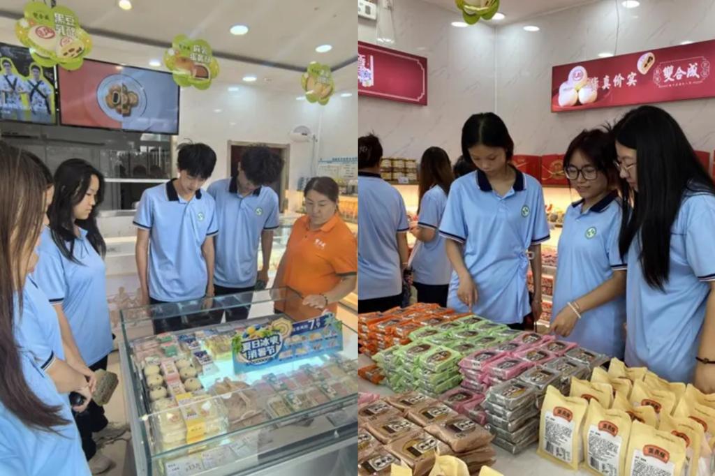 在双合成直营门店店长对店内货品进行分类讲解后,同学们赶在顾客入店前将店里的产品迅速进行熟悉,记住产品名目及保存方法等。这不是一次普通的课外活动,而是一场别开生面的销售体验。今天,他们化身销售员,亲身体验着售卖食品的乐趣。