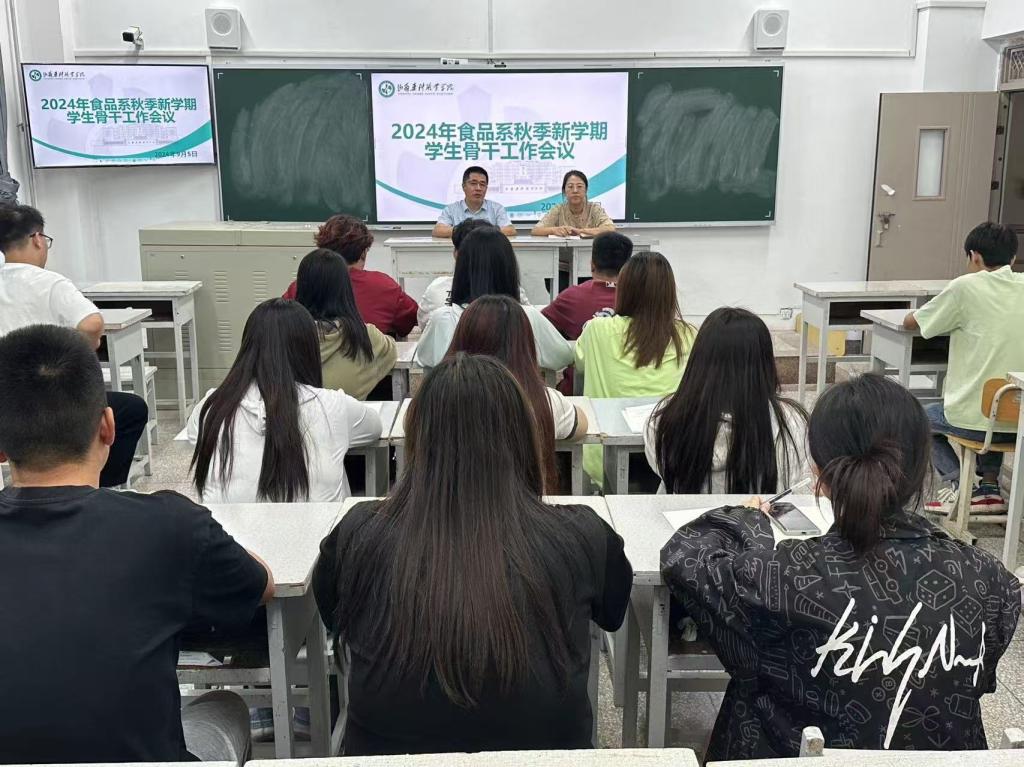 9月5日下午,食品系在东教102教室召开了新学期第一次团学工作会议,系党总支书记申永政、辅导员史大鑫及全体团学干部参加了本次会议。