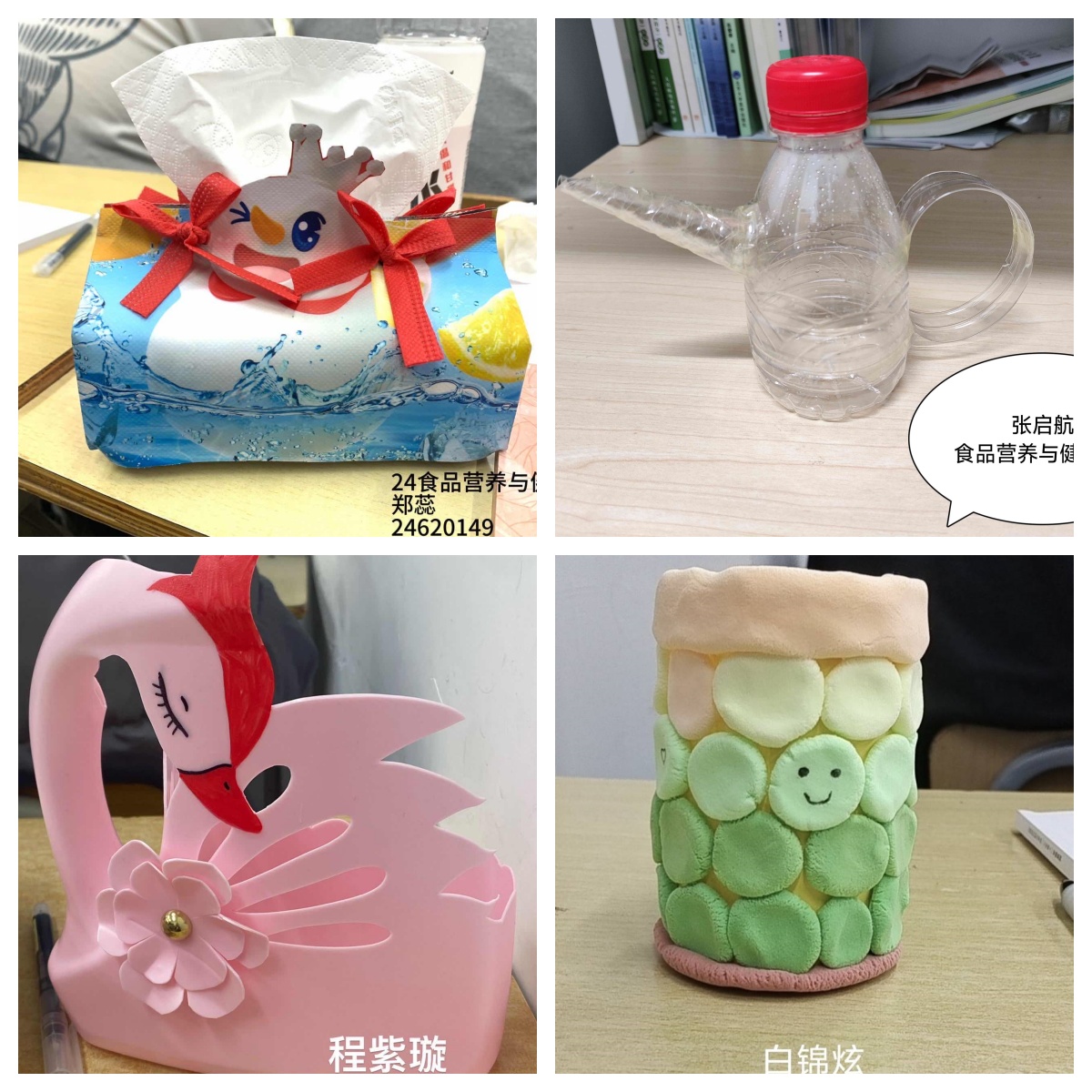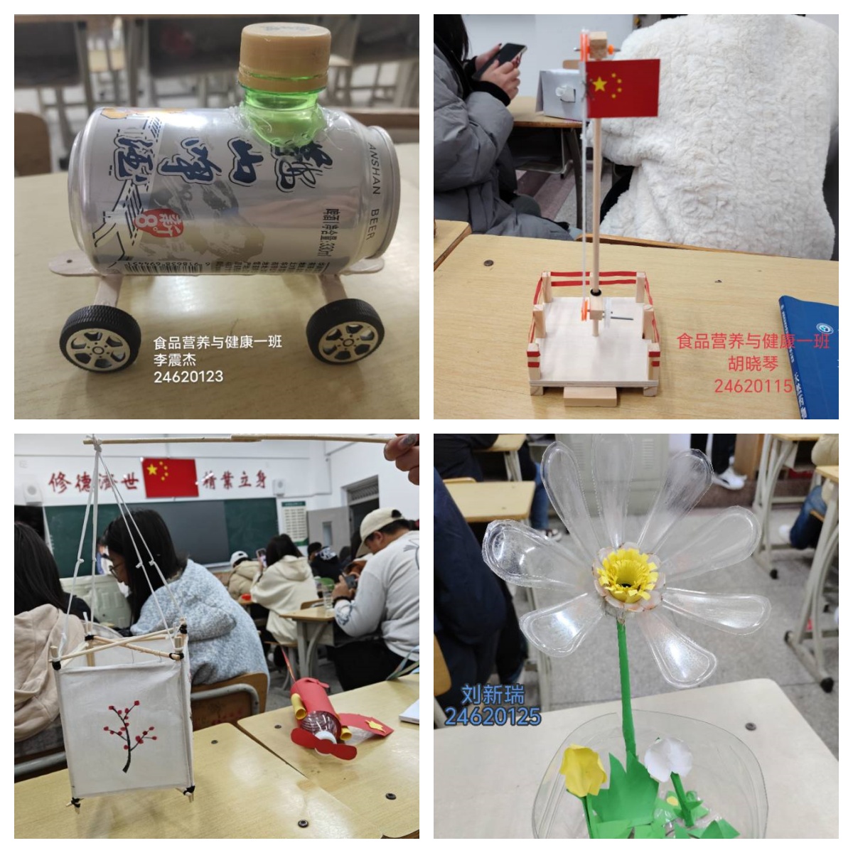 为了全面落实国家劳动教育育人理念,提高青年大学生的劳动兴趣与劳动能力,引导广大青年学生践行环保理念,提高当代大学生环保创新意识。从物品循环利用的环保理念出发,食品系开展了以“劳”赋能,变废为宝手工展活动。
