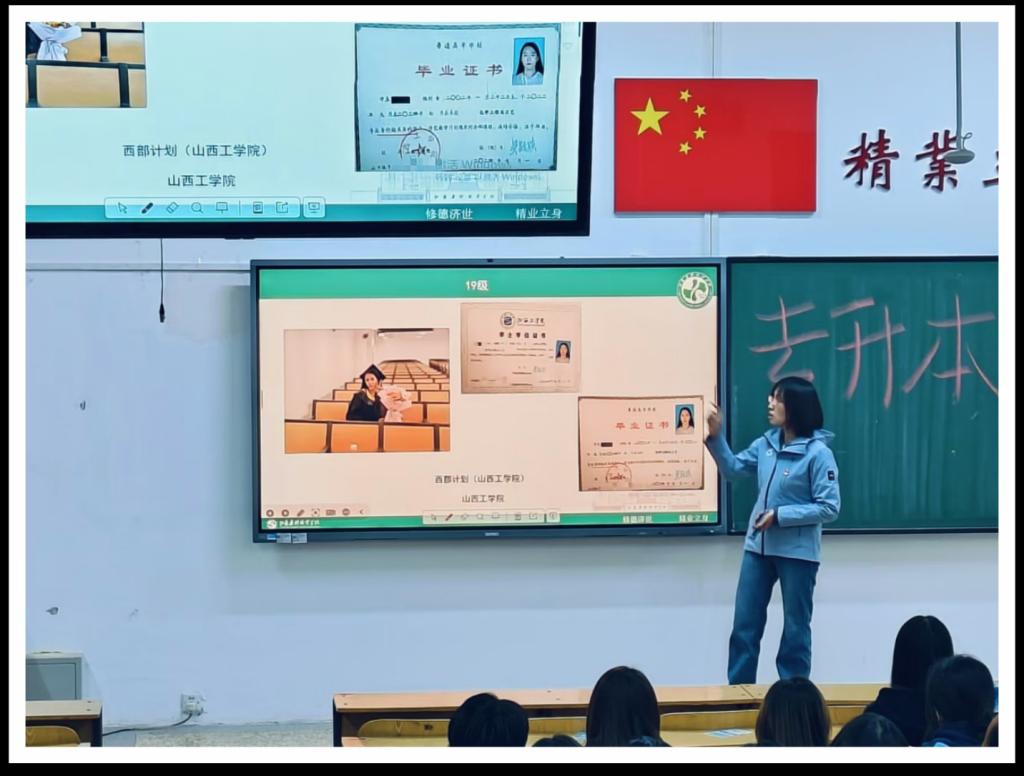 讲座结束后,杨老师强调:专升本是使同学们能够抓住唯一一次从专科学历提升为全日制本科生的机会。她鼓励同学们奋勇向前,把握人生机遇,未来更好地服务于社会。她希望同学们从现在开始规划好未来三年的大学生活,为升学与就业提升竞争力。