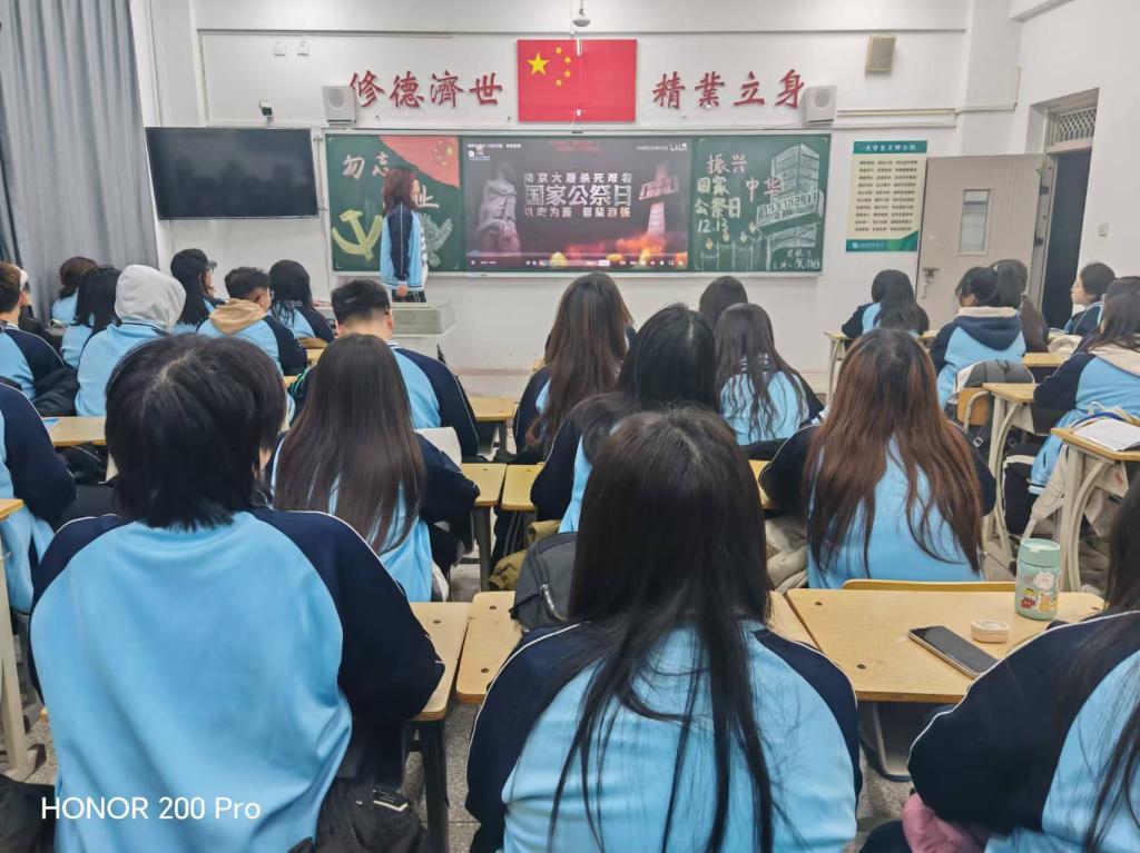班会课上,主持人通过回顾历史,向同学们阐述设立国家公祭日的目的意义、讲解了震惊世界的“南京大屠杀”中日本帝国主义所犯下的滔天罪行,讲述了中国军民奋起抗击及抗日战争取得胜利的光荣历史,对同学们进行了一系列的爱国主义教育,使同学们明白今日的幸福生活来之不易,要发奋图强,不忘国耻,牢记“落后就要挨打”的道理。接着,主持人利用视频、PPT等展示历史材料,向学生讲明了我国设立公祭日的必要性,用图片和数据的方式为学生们进一步理解历史发展的真实过程,感受战争的残酷与和平的珍贵。最后,2024级食品营养与健康一班王诗宇同学表示:“我们必须铭记那段黑暗的时光,以史为鉴,奋发图强。铭记历史,勿忘国耻,青少年必须自觉地把学习同祖国的繁荣,民族的富强结合起来,从身边做起,从小事做起,只有今天做最好的自己,明天才能更加强大。”