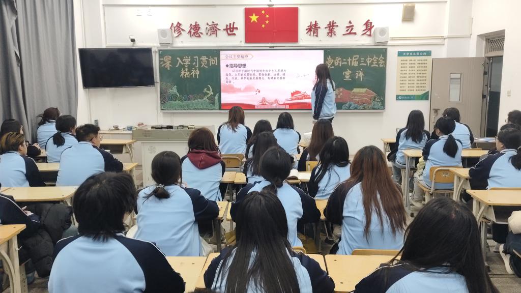 23级食品检验检测技术三班张晓妍:通过本次团课学习,我们认识到了党的二十届三中全会以精准施策、深化改革为引领,推动经济实现高质量发展。学习宣传贯彻全会精神,抓好党的创新理论武装。只有这样,我们才能在新时代的征程中,不断开创经济社会发展新局面,为实现中华民族伟大复兴的中国梦贡献力量。