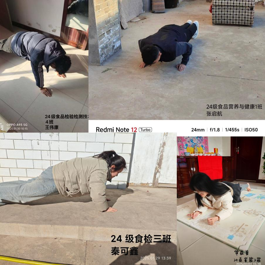 新春佳节刚过,为了让同学们始终保持昂扬向上的生活态度,磨炼坚持不懈的坚毅品质,培养高度自律的良好习惯,同时让同学们深刻认识到运动对于身心健康的重要意义,以饱满的精神状态开启新学期的学习生活,食品系组织开展为期二十天的运动健身打卡活动。活动期间,同学们每天只需从众多体育项目中任选一项进行锻炼,随后拍摄运动照片上传打卡即可。