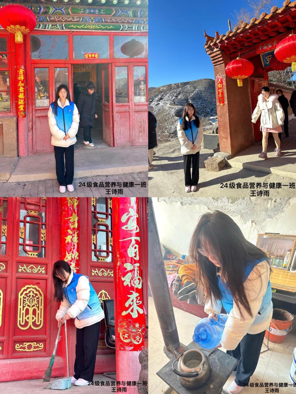 2024级食品营养与健康1班王诗雨:在寒假期间,我积极参加了2025春节古都大同文旅志愿者服务活动,于我而言是一次难忘且意义非凡的经历。春节期间,寺庙里熙熙攘攘,香客与游客络绎不绝。我站在寺庙的入口,负责引导游客有序进入。这次志愿服务,不仅让我为他人提供了帮助,更让我在古都大同的寺庙文化中,触摸到历史的温度,感受到传承的力量。在新的一年,它激励我继续投身志愿活动,传播家乡的美好。