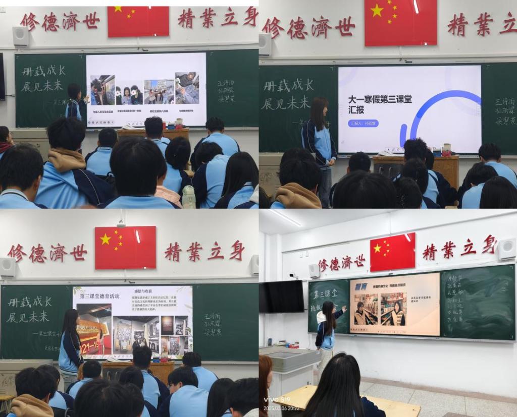 分享会上,各团支部选出来的优秀代表借助PPT、视频、图片等形式,展示了寒假丰富多样的实践活动。内容涵盖社区志愿服务、企业专业实习、体育锻炼、文化宣传以及劳动实践,从不同角度践行“五育并举”。