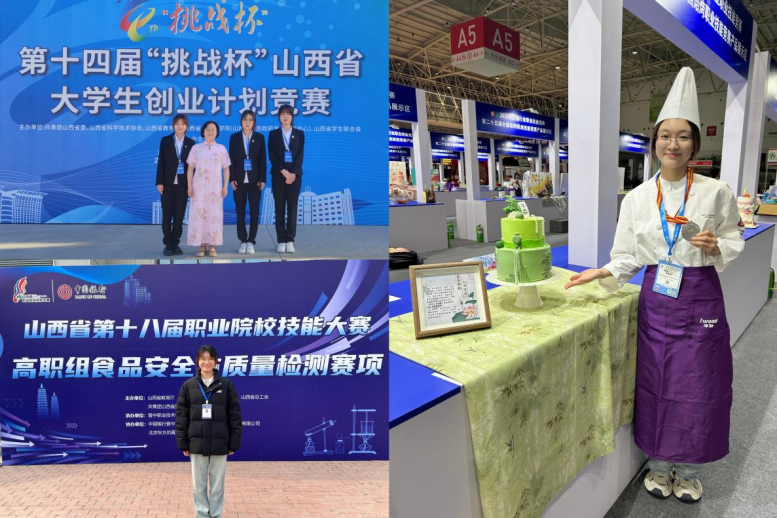 在学业上,我收获颇丰。2023-2024学年度,我有幸荣获本专科生国家奖学金,这是对我学习成果的极大肯定。在专业技能竞赛方面,我积极参与,在山西省第十八届职业院校技能大赛高职学生赛道食品安全与质量检测项目获得二等奖 ;第十四届全国职业技术院校在校生创意西点技术大赛中拿到银奖 ;还与团队凭借《香满口,益满身——晋味特色草本玲珑酥》在第十四届“挑战杯”山西省大学生创业计划竞赛中斩获银奖。