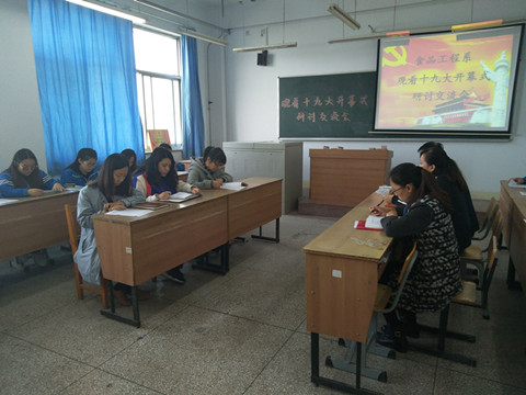10月19日,系党总支组织教职工和学生入党积极分子在东教学楼606教室召开收看十九大开幕式后讨论交流会,会后,全体学生以班级为单位进行交流讨论。