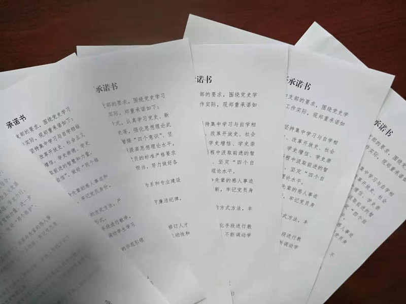 会上,首先由教师党支部书记杨兆艳同志组织与会人员集中学习习近平《论中国共产党历史》、《毛泽东 邓小平 江泽民 胡锦涛关于中国共产党历史论述摘编》及《中国共产党党员权利保障条例》,再次深入学习了习近平总书记关于党史学习教育的重要讲话精神;之后,与会同志结合自身实际,围绕对党史学习教育重要性的认识,开展了交流讨论;之后,每名党员结合自身工作、学习、生活实际,提出个人承诺践诺内容,并现场签署承诺书;最后,由系党总支副书记郝日晋同志领誓,与会全体党员重温入党誓词,进一步激发党员同志的荣誉感、责任感和使命感。