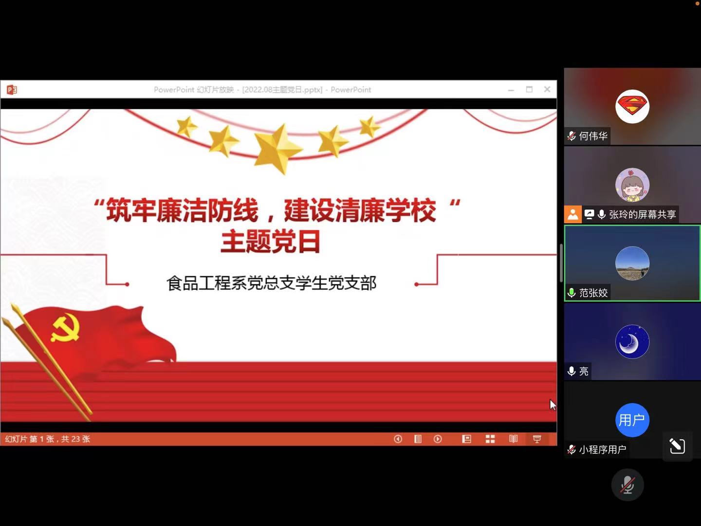 8月23日,食品工程系党总支学生党支部开展了“筑牢廉洁防线,建设清廉学校”主题党日活动,强化党员干部的廉洁自律意识,筑牢拒腐防变的思想防线。学生党支部全体党员参加活动。