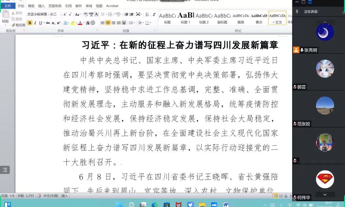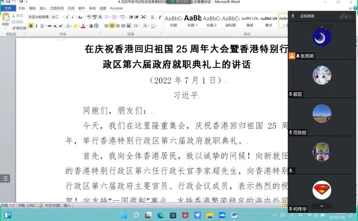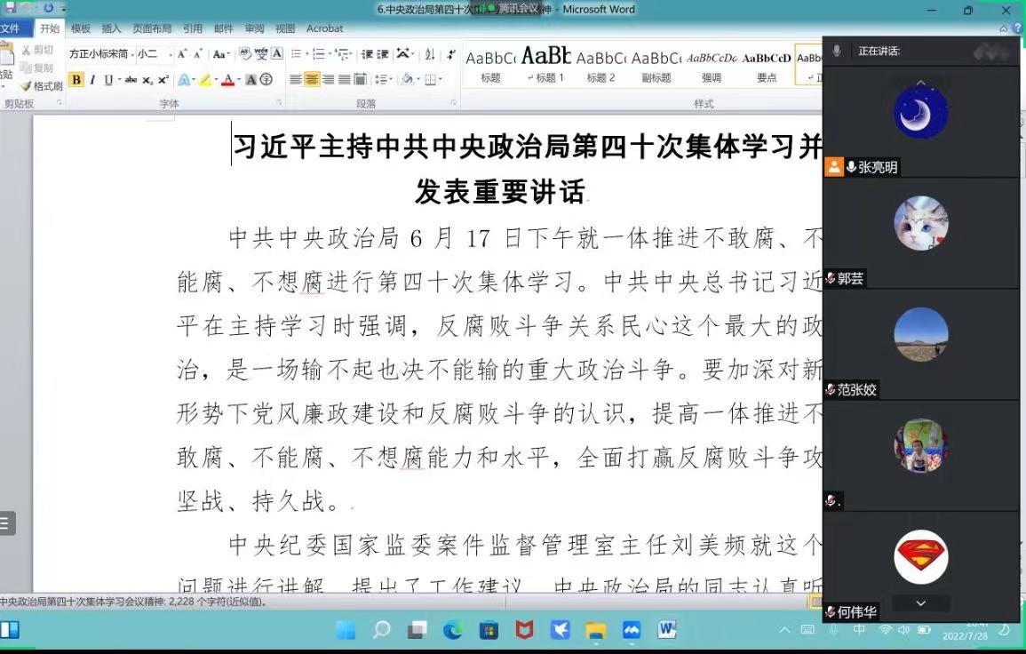 7月28日,根据学院《关于2022年7-8月份党委(党总支)理论学习中心组和教职工政治理论学习安排的通知》精神,结合近期工作实际,食品工程系党总支理论学习中心组召开第7次学习会。