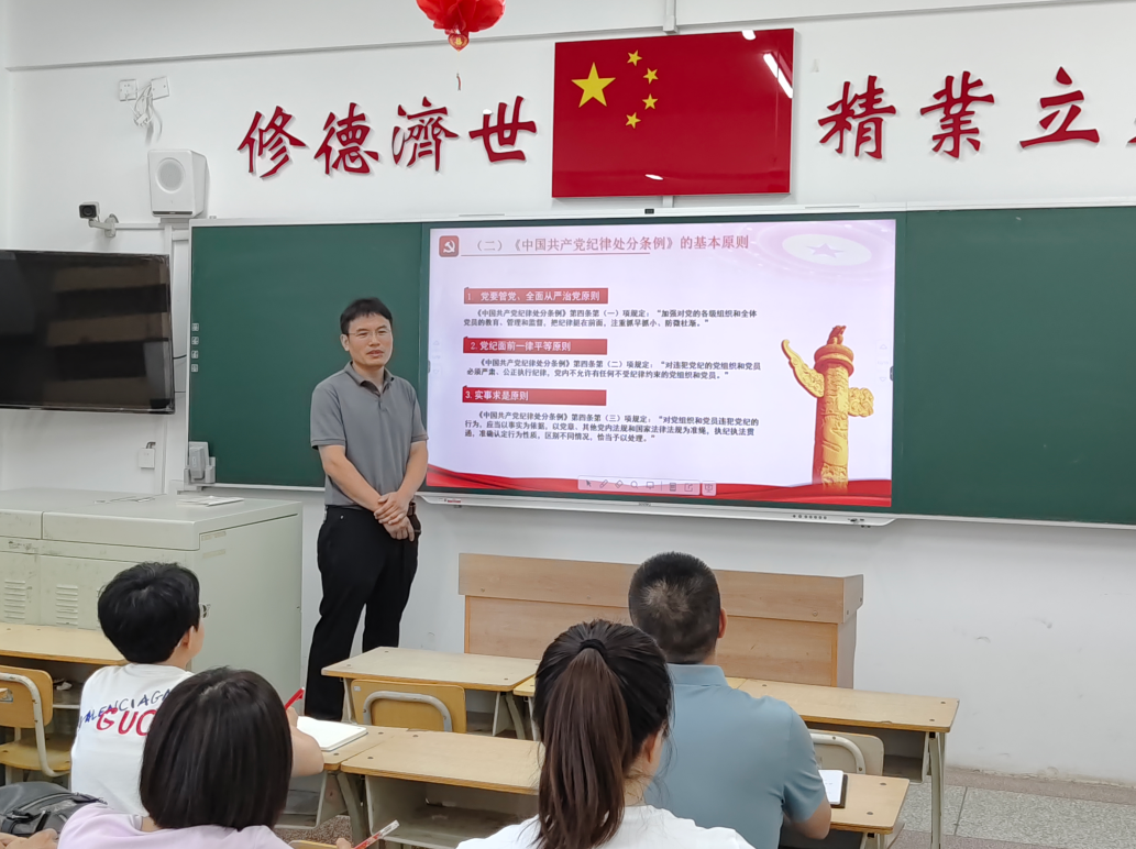 为深入学习贯彻习近平总书记关于党纪学习教育的重要讲话和重要指示精神,进一步深化对《中国共产党纪律处分条例》的理解,6月24日,党委委员、纪委书记庄东军以《以学纪知纪促进明纪守纪》为主题,讲授了一堂主题鲜明、内涵丰富的党纪学习教育专题党课,食品系全体教师、全体预备党员参加学习。