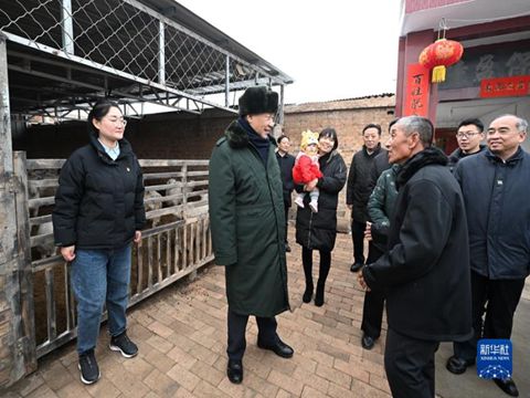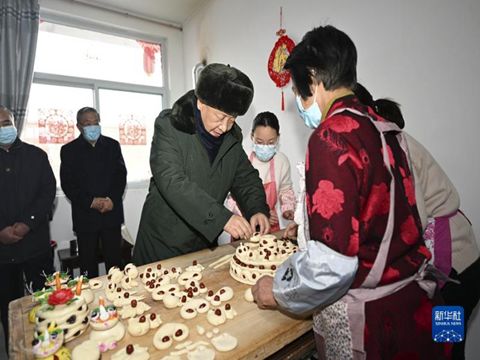 26日下午,习近平冒雪来到临汾市考察调研。去年10月,山西出现有气象记录以来最强秋汛,全省11市受灾。霍州市师庄乡冯南垣村是临汾市农房受损较为严重的村庄之一,习近平专程来到这里看望慰问受灾群众。他听取了山西灾后恢复重建、秋冬补种、确保群众安全温暖过冬、加强防灾减灾和应急体系建设等情况汇报,随后来到受灾村民师红兵家4间窑洞去年因强降雨全部倒塌,在政府补助和各方援助下重建了2间装配式住房,目前全家已经入住。习近平仔细察看院落、住房。看到师红兵一家正在做年馍,习近平加入进来,捏了一个枣花,并为面团点上红枣。欢声笑语中,一个个年馍制作出来,格外喜庆。