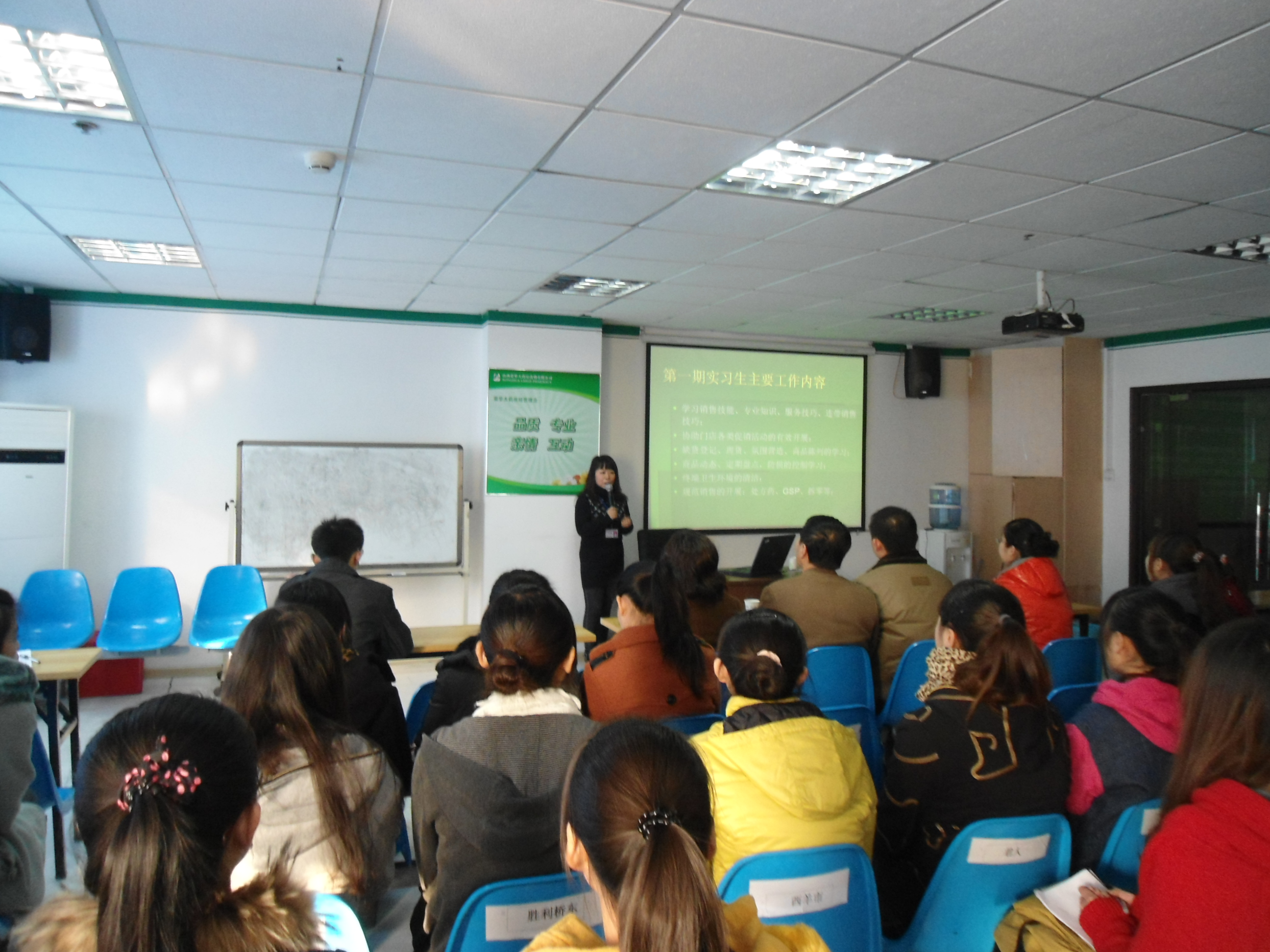 会上,冯经理首先就我系学生第一期工学交替实习情况进行了简要总结,对参加工学交替学生的综合素质、专业知识、吃苦耐劳精神给予了高度评价,并对实习结束的27名学生提出了殷切期望,期待同学们毕业后再回荣华,共写辉煌。我系领导对山西荣华大药房连锁有限公司作为我们的校外实习基地,为我系学生提供良好的实习平台表示感谢,同时,希望参加第一期工学交替的同学认真总结实习过程的经验和不足,并与课程相结合,真正做到理论指导实践,实践反馈理论;希望即将参加第二期工学交替的同学,要保持良好心态,珍惜实习机会,提升综合素质。