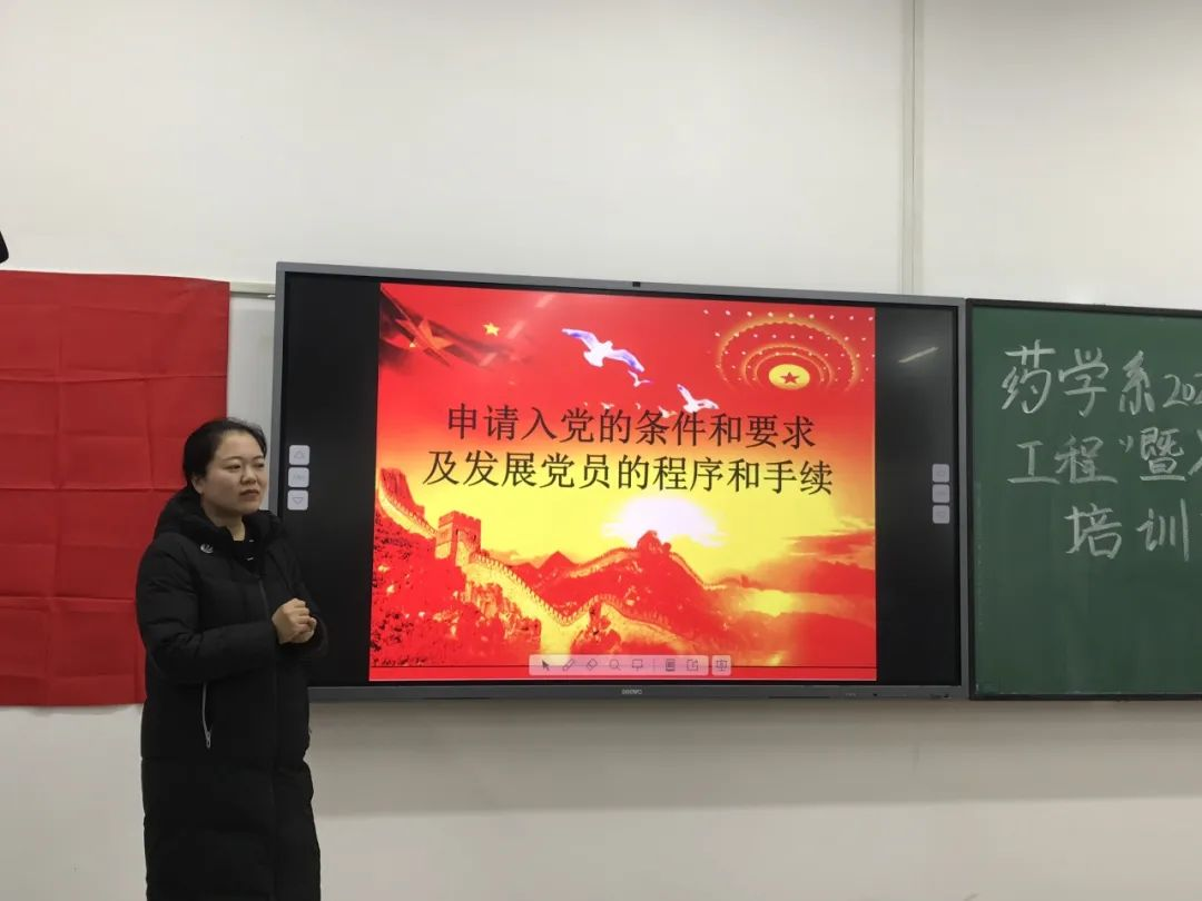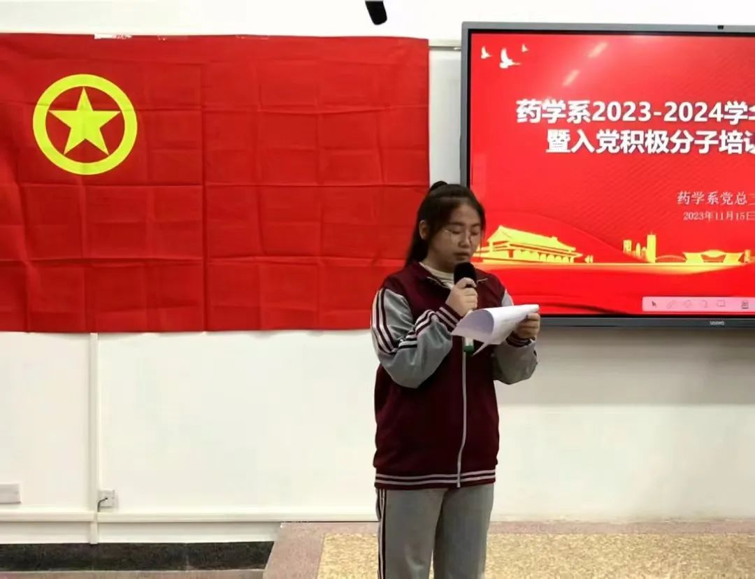 为深入学习宣传贯彻习近平新时代中国特色社会主义思想,切实提升入党积极分子、团学骨干的思想政治素质、政策理论水平和实践创新能力,11月15日,我系在东教学楼一层一阶教室举办了2023—2024学年“青马工程”暨入党积极分子培训班开班仪式,药学系党总支副书记程俊峰、专职组织员闫伟老师出席,66名入党积极分子、全体团学骨干参会。药学系分团委书记白汇军主持本次开班仪式。