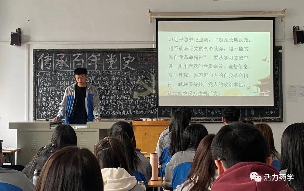 团课上,各团支部通过视频、PPT等形式,向同学们介绍了党史上的重大事件、重要会议、重要人物。让同学们知道了党为实现国家富强、民族振兴、人民幸福和人类文明进步事业作出的伟大历史贡献。